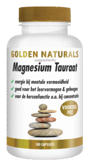 Het bevat magnesium tauraat dat is een combinatie van het mineraal magnesium en het aminozuur taurine. Met een natuurlijke vorm van vitamine B6.