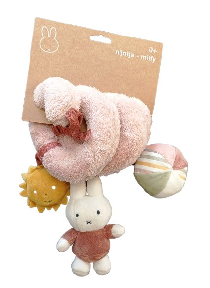 Ontdek alle vrolijke activiteiten van deze boxspiraal van nijntje. Zoals een rammeltje, een pieper en een rammelaar. Het speeltje stimuleer de zintuigen en de hand-oog coördinatie van je kindje. De spiraal is eenvoudig te bevestigen aan de wieg, box of autostoel. Leeftijd: vanaf de geboorte.